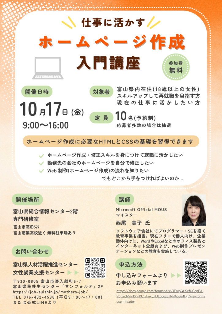 【10/17(金)開催】仕事に活かす!ホームページ作成入門講座