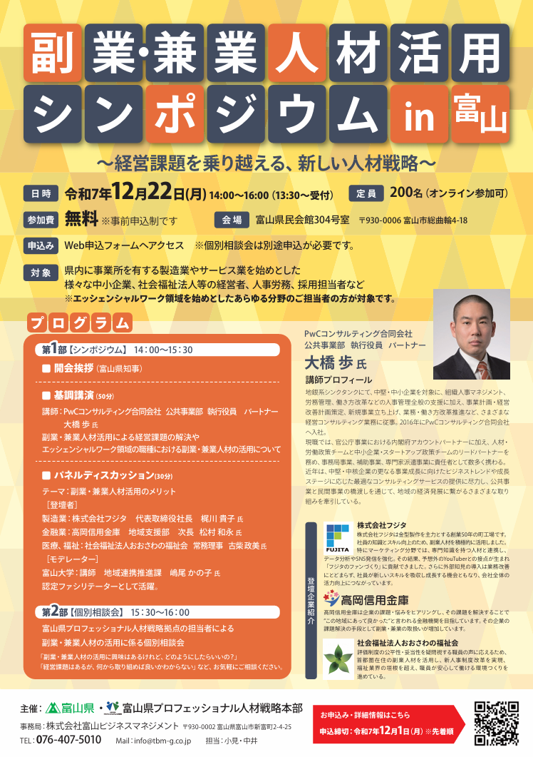 【12/22(月)開催】副業・兼業人材活用シンポジウムin富山を開催します!