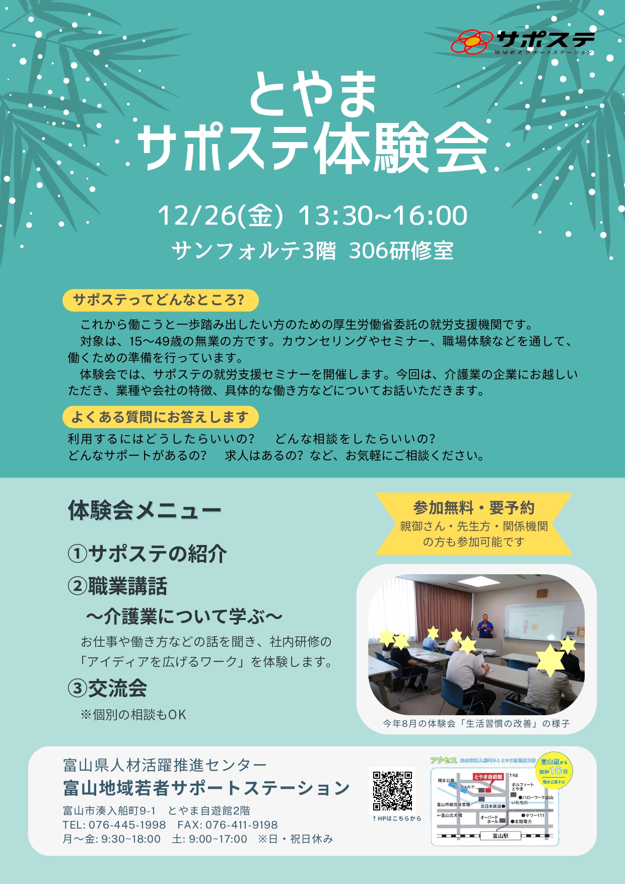 【働く準備】12/26 とやまサポステ体験会のご案内