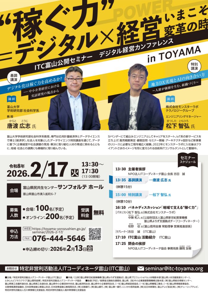 【2/17(火)開催】ITC富山公開セミナー デジタル経営カンファレンス in TOYAMA